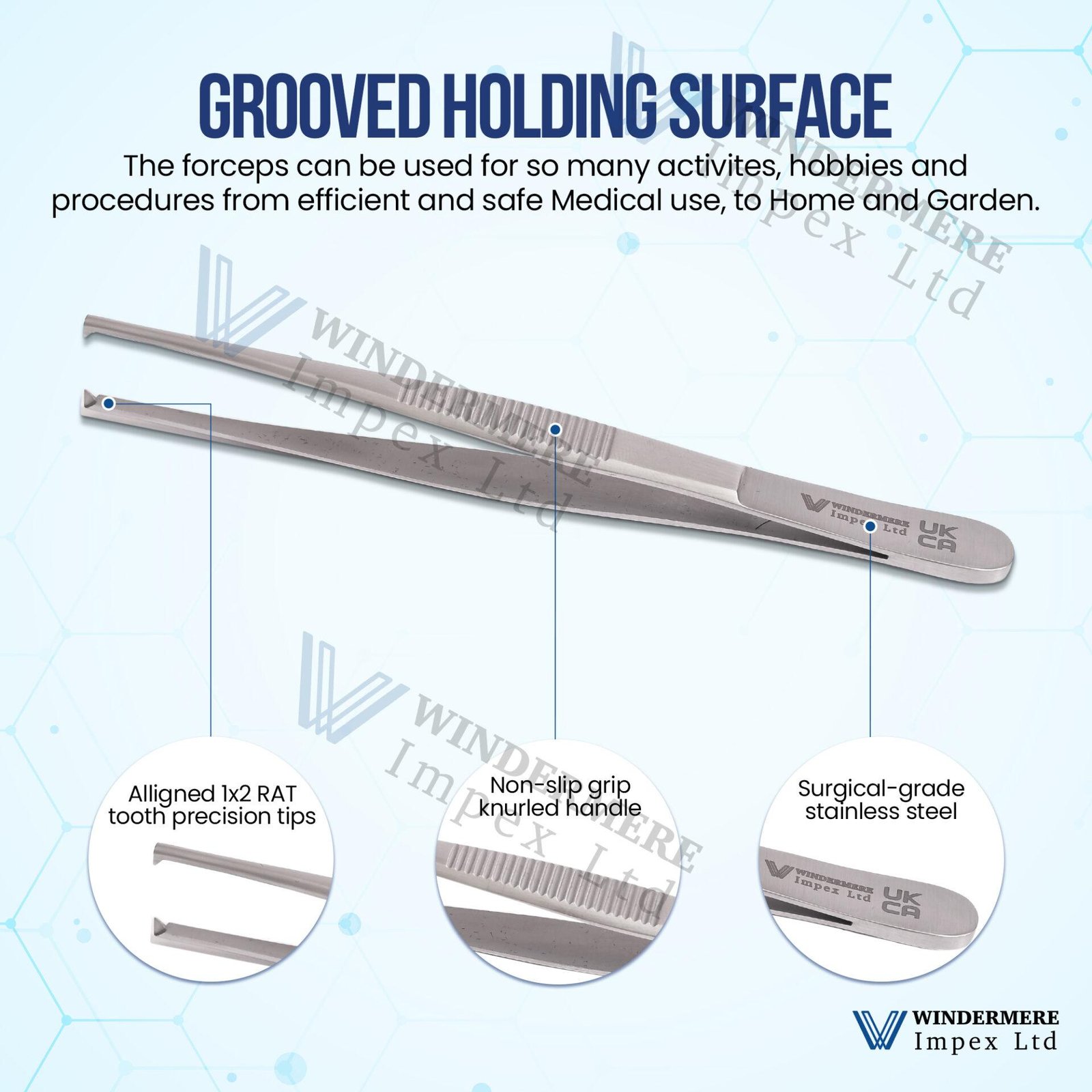 Flat-ended forceps with serrated tips providing firm grip on tissue specimens, slides, or small anatomical parts. - Tooth 1×2 Tissue Forceps