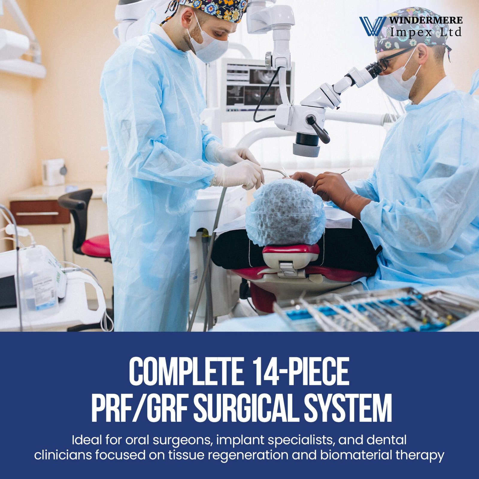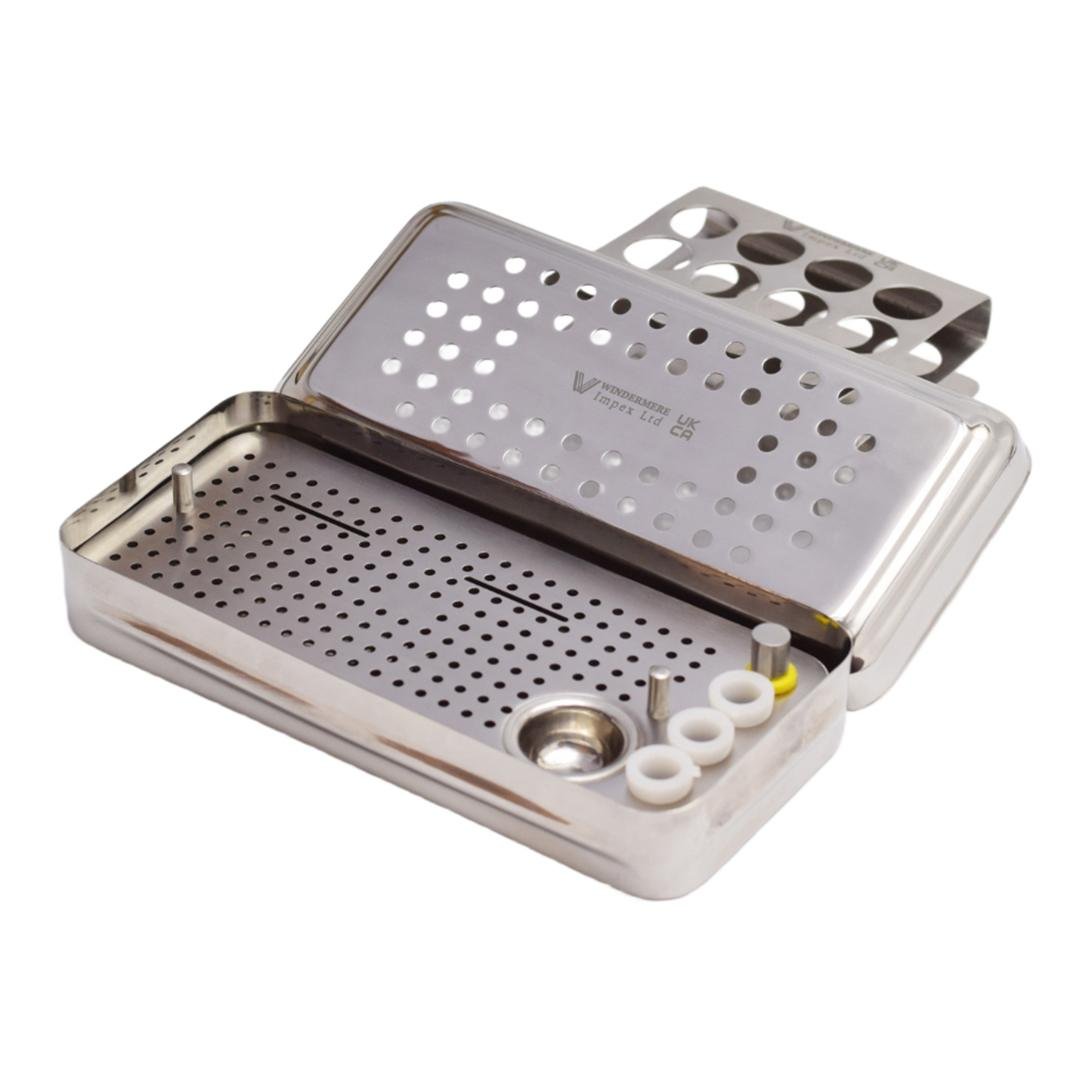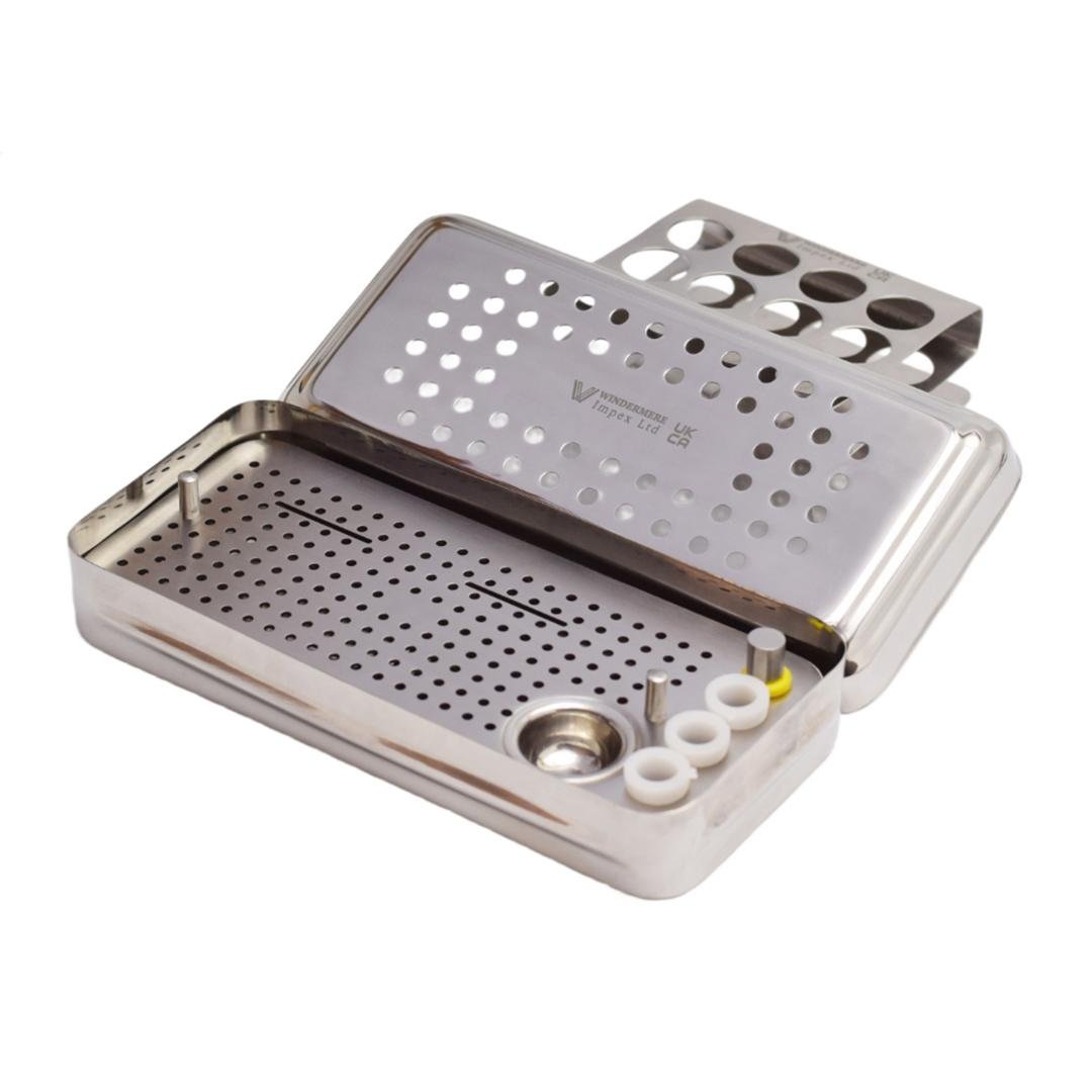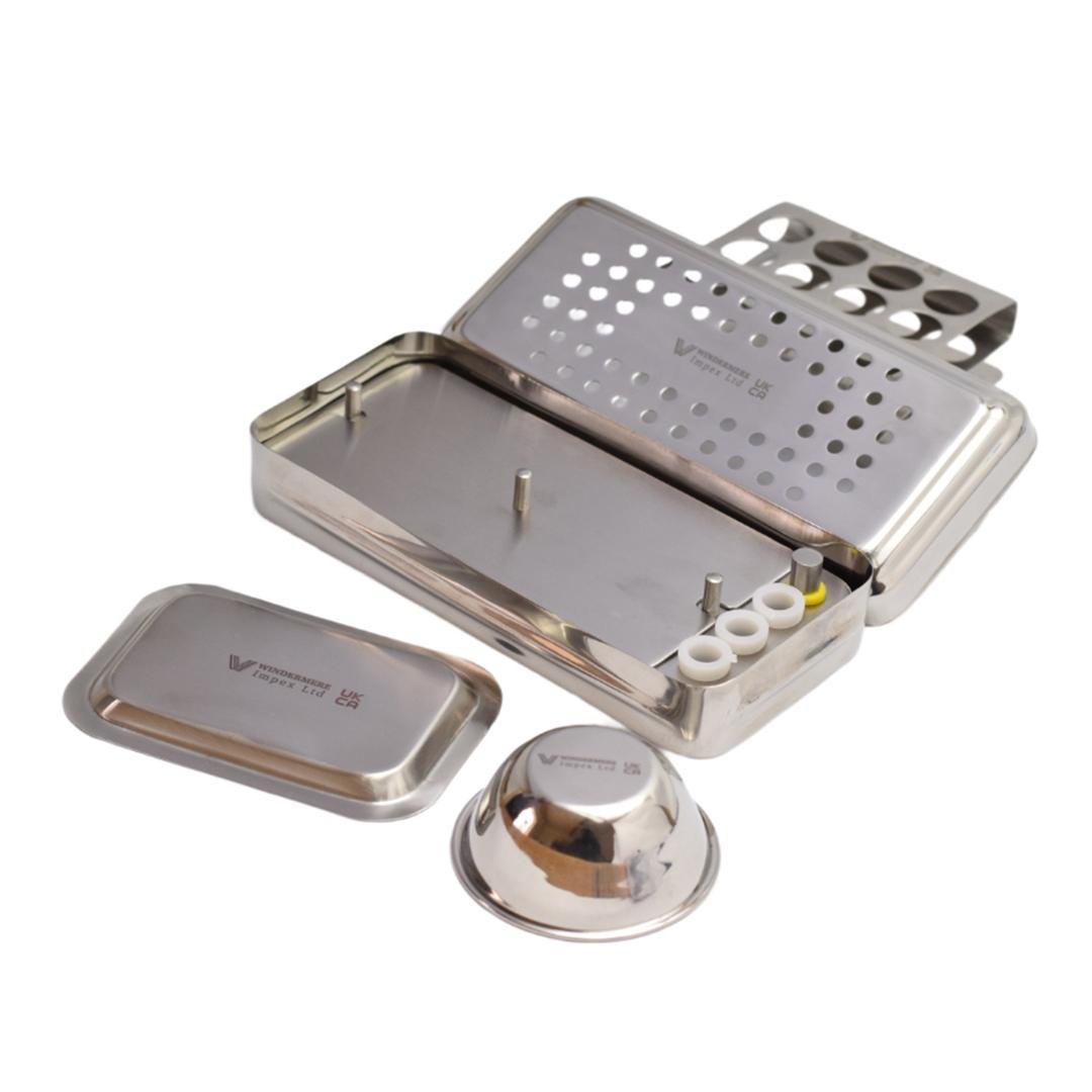 The Windermere Impex Ltd Dental PRF GRF Box Dental Implant Membrane Surgery Set of 14 in Stainless Steel Cassette is a premium, German-quality surgical kit designed for advanced Platelet-Rich Fibrin (PRF) and Graft (GRF) procedures. Expertly crafted from medical-grade stainless steel, this set ensures optimal precision, durability, and corrosion resistance.