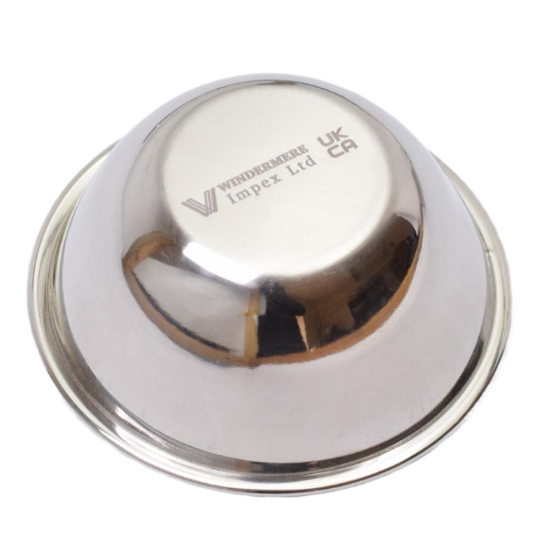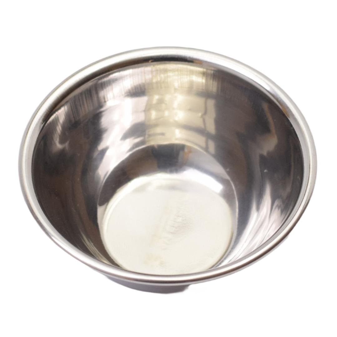 A compact stainless steel bowl used for mixing graft materials, PRF clots, or saline solutions during surgery.