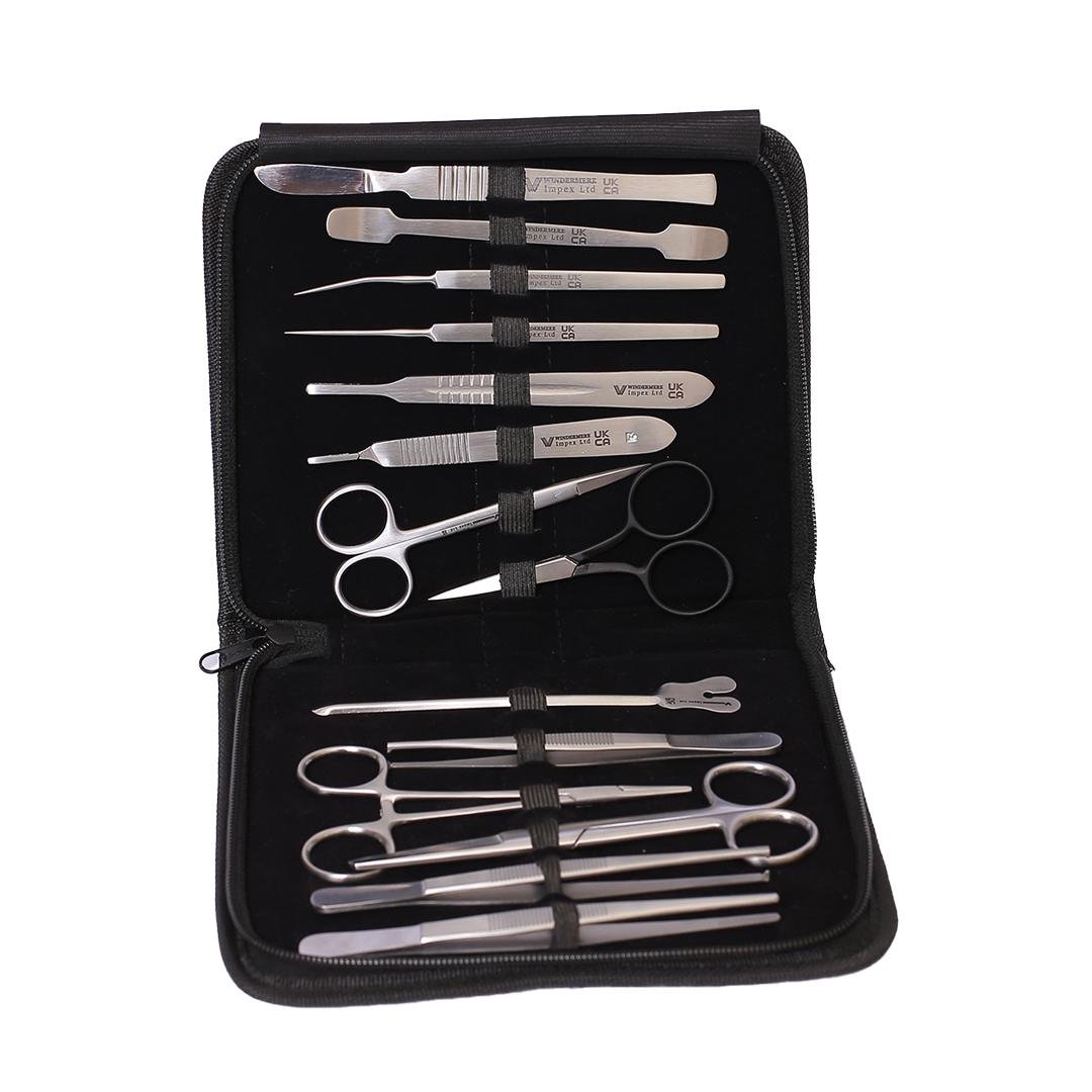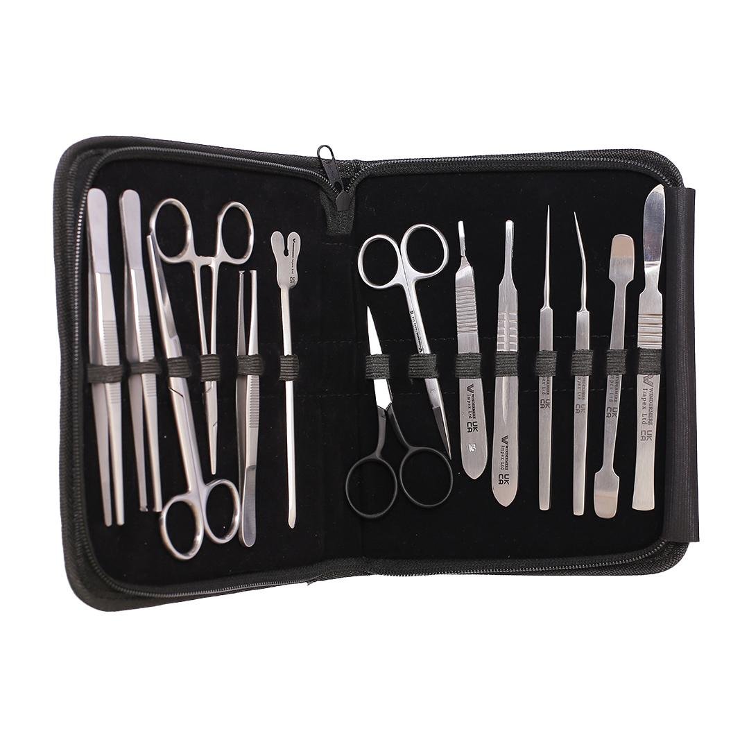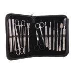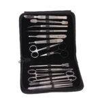 Each instrument in this dissecting set is ergonomically engineered to provide precise handling and maximum control during anatomical dissections, surgical training, and laboratory applications. The kit is neatly organized in a luxurious leather case, offering a professional appearance along with protection, cleanliness, and easy portability.