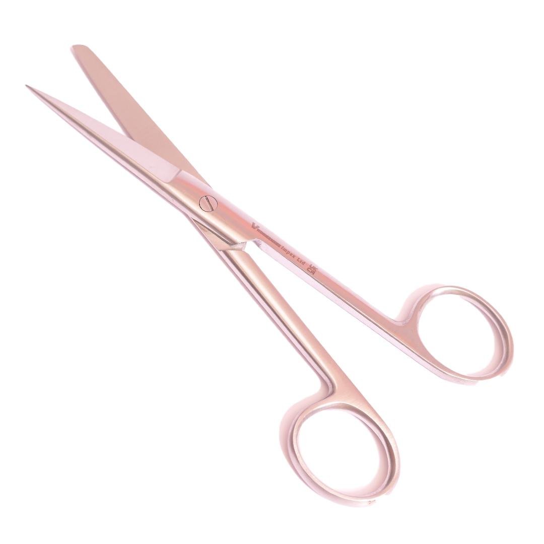 Locking hemostatic forceps for gripping or clamping small tissue sections and blood vessels during procedures. - Operating Scissors – Sharp Blunt Straight 5”
