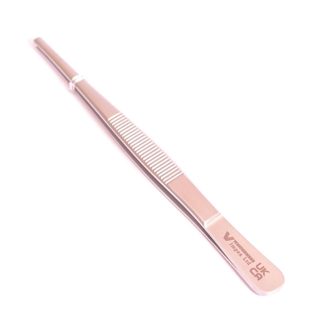 Flat-ended forceps with serrated tips providing firm grip on tissue specimens, slides, or small anatomical parts. - Tooth 1×2 Tissue Forceps