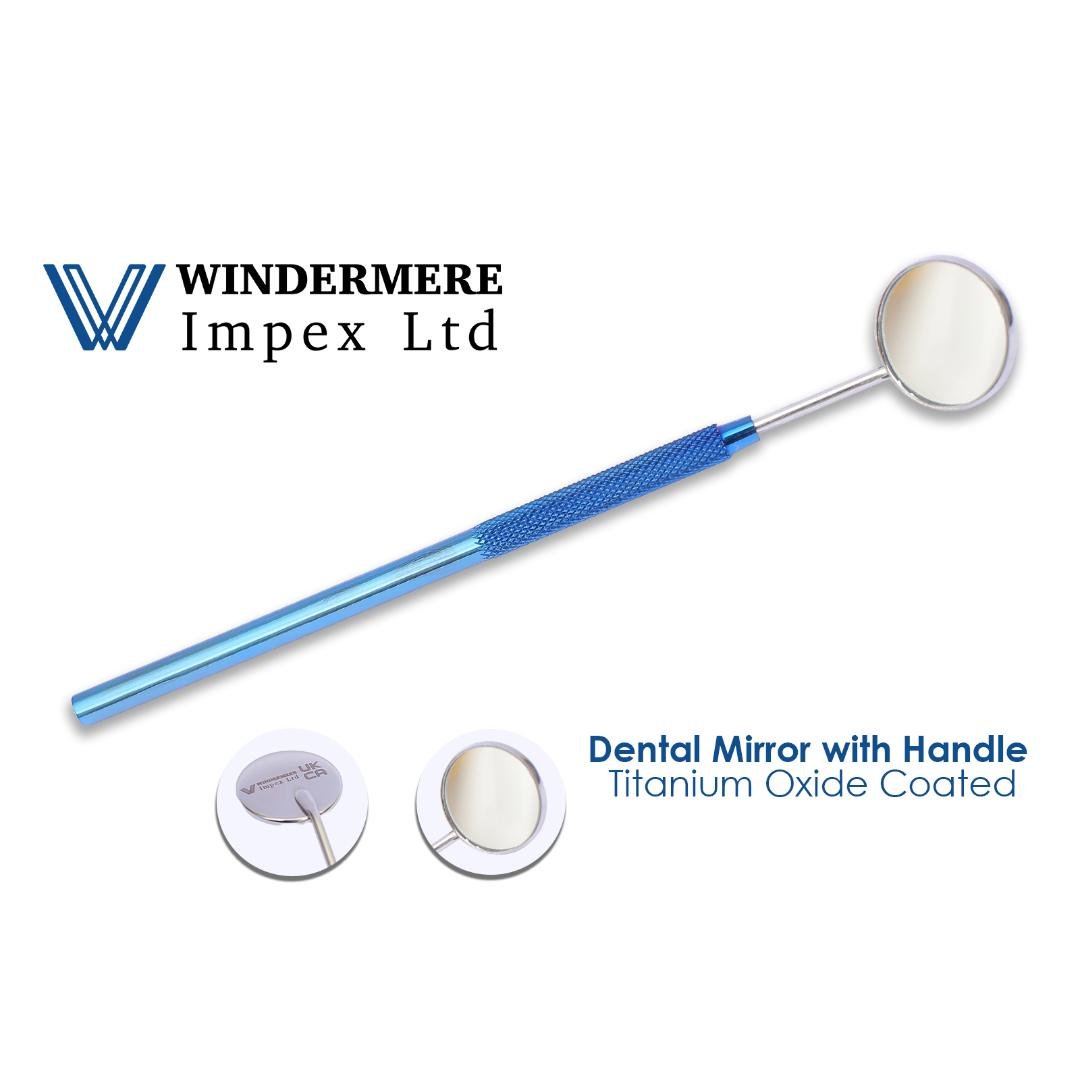 Windermere Impex Dental Mirror is designed for clear intraoral visibility and accurate indirect vision. The titanium oxide–coated handle offers superior resistance to wear and corrosion, while the anti-fog mirror provides crystal-clear reflection. Its ergonomic design ensures comfort and balance during extended procedures.