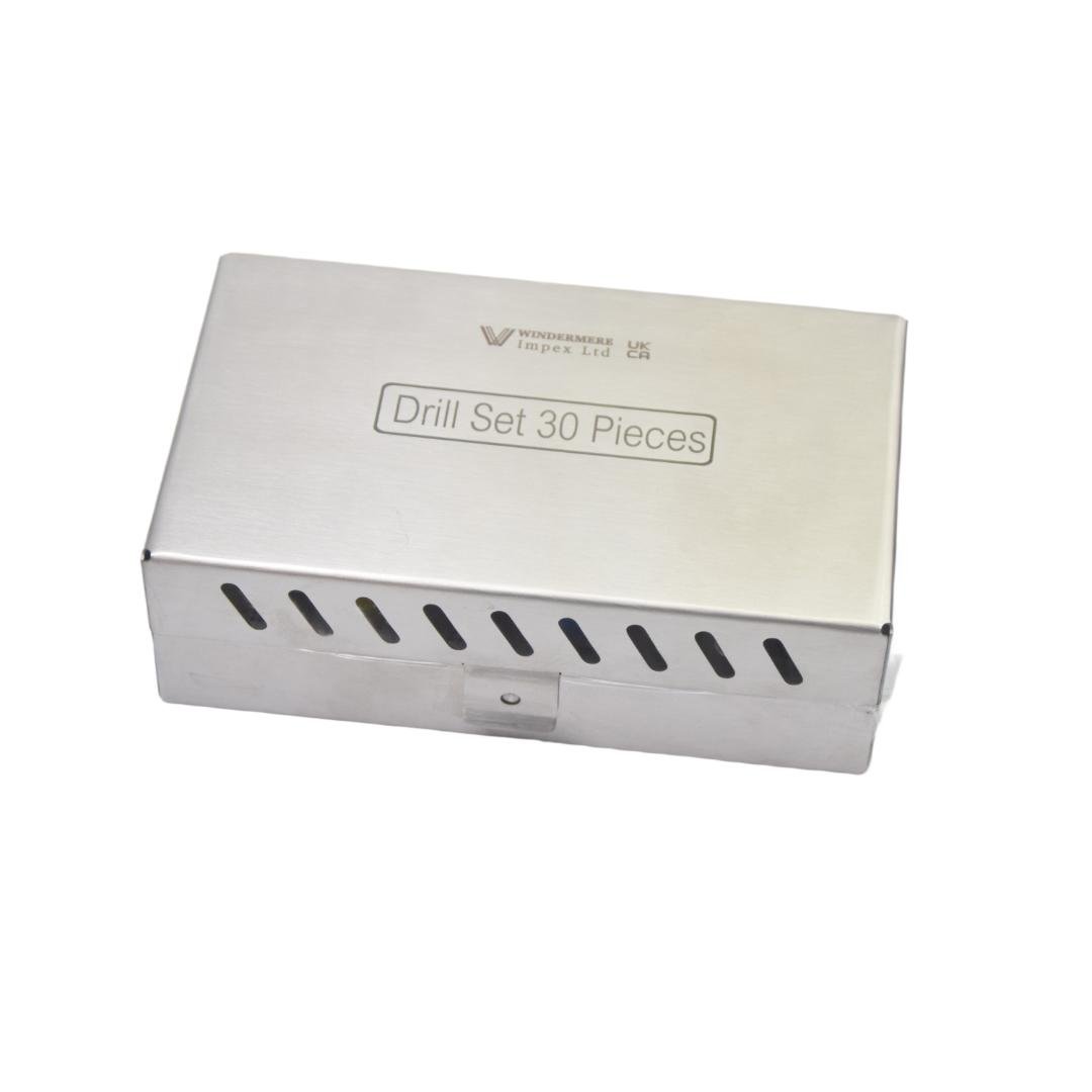 The Windermere Impex Ltd Dental Implant Twist Drills Kit Stopper Drills Universal Kit (30 Pcs) is a precision-engineered professional implant drilling system designed for controlled, accurate, and efficient osteotomy preparation in dental implantology.