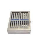 A durable, sterilizable tray used to store and organize osteotomes during surgery. The stainless steel cassette ensures safe, easy handling and sterilization of surgical instruments, keeping them organized and ready for use.