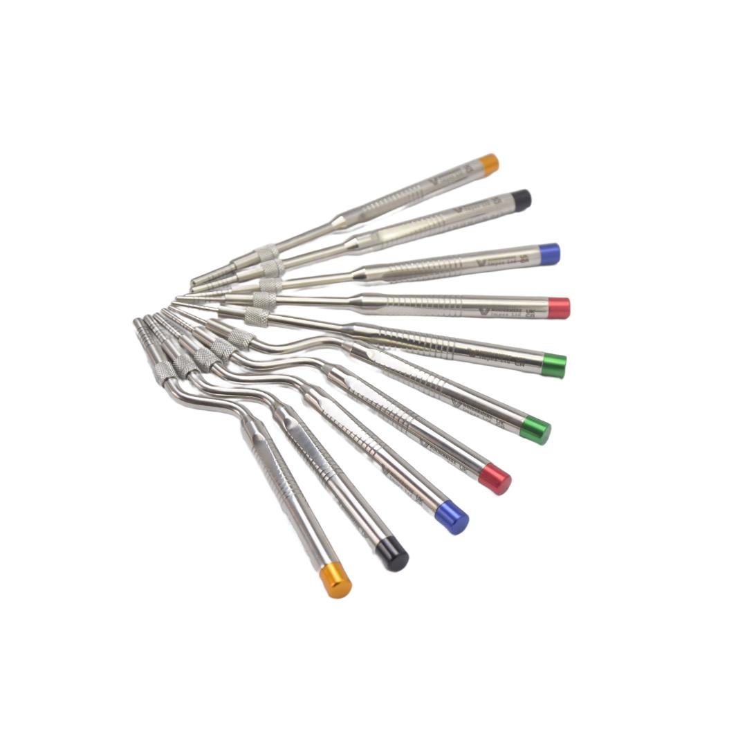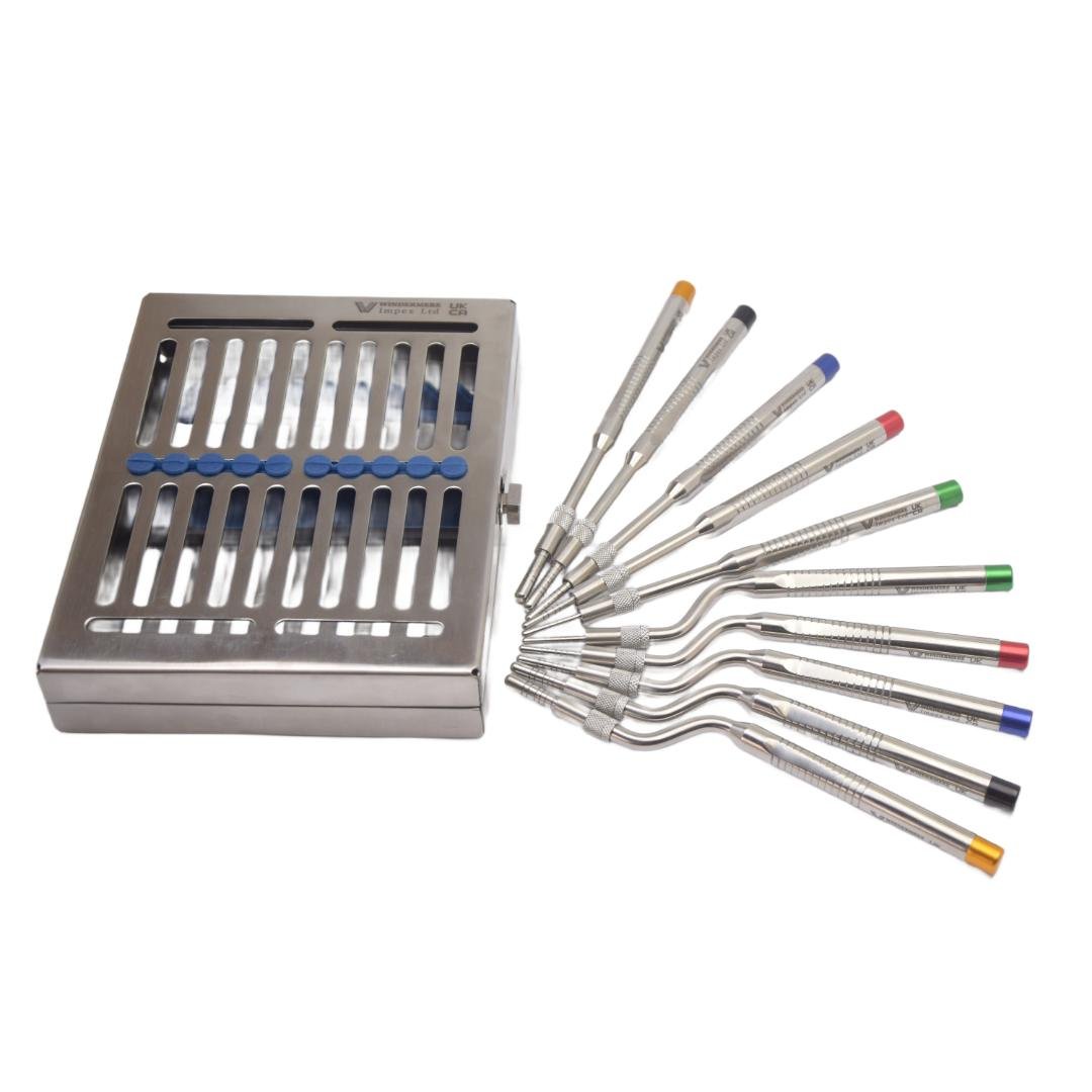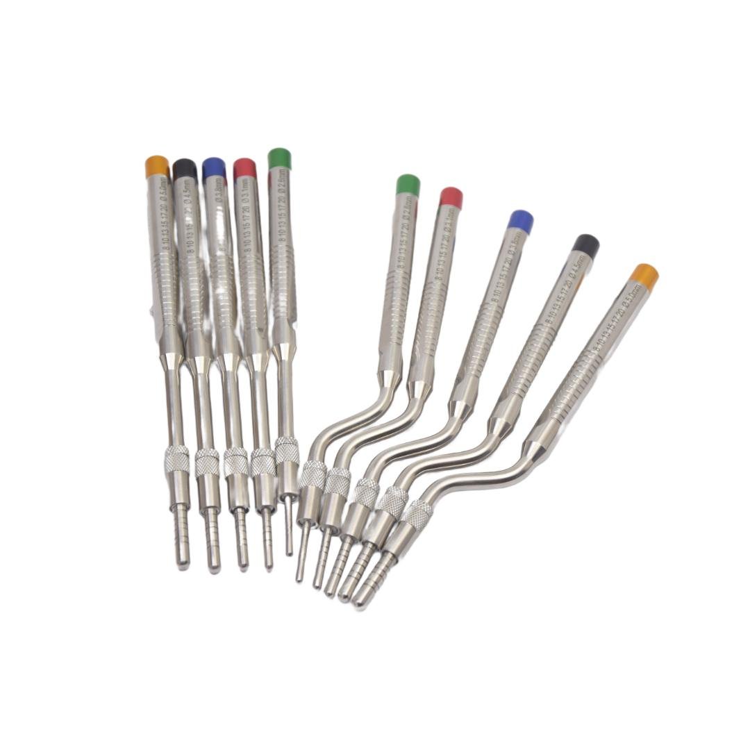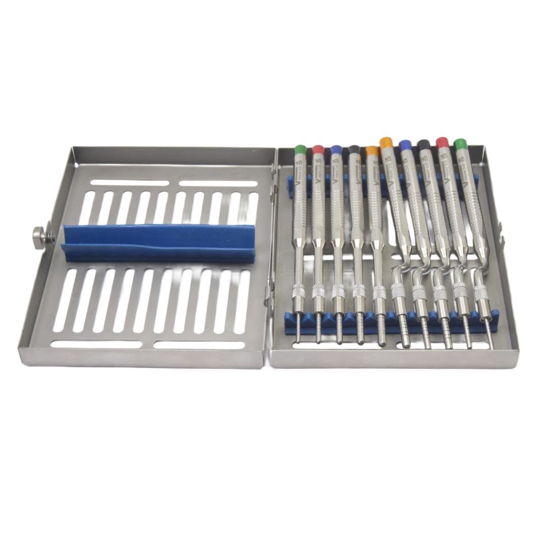 • Complete 10-piece osteotome and PRF instrument system: Perfect for advanced surgical applications involving bone manipulation, sinus lifts, and grafting.