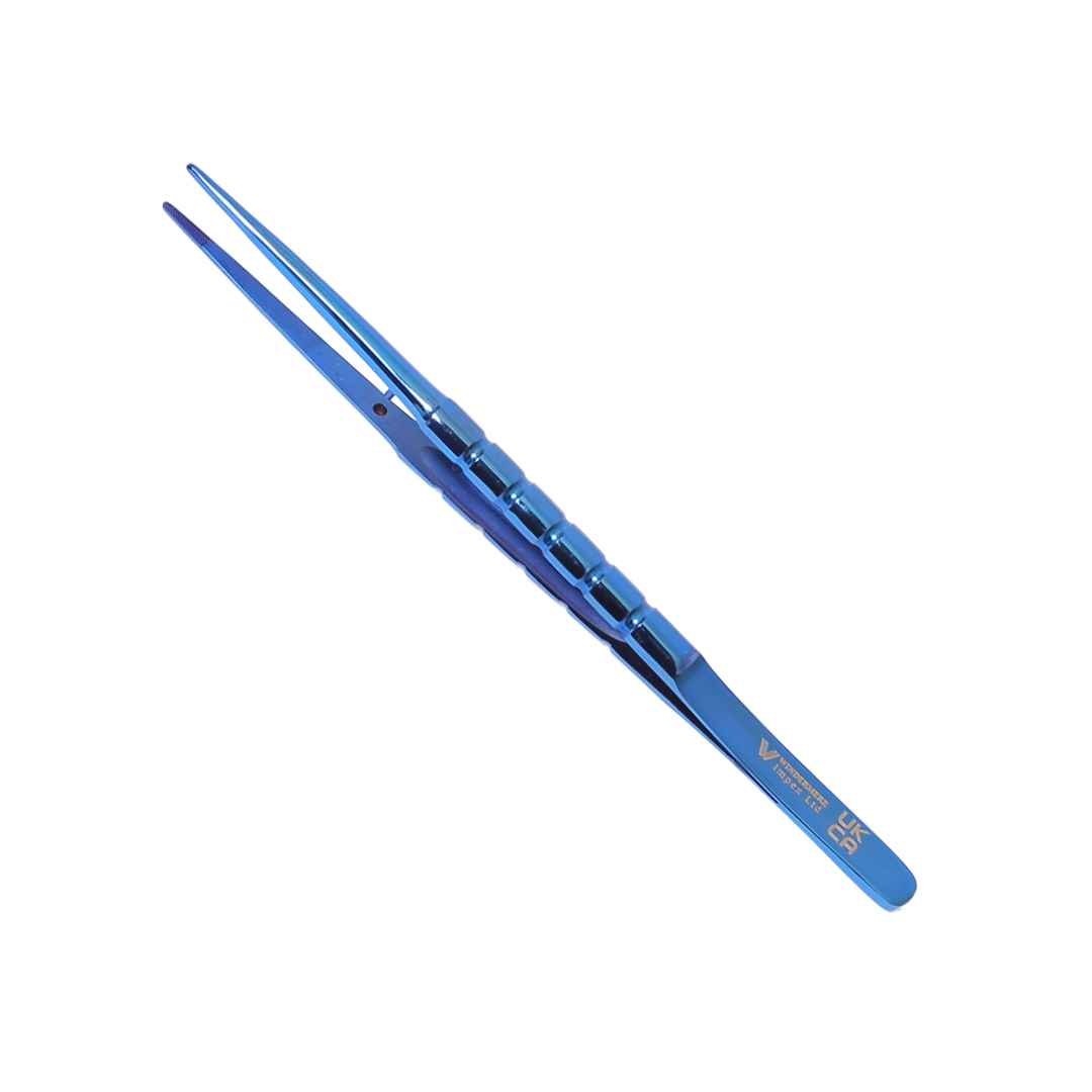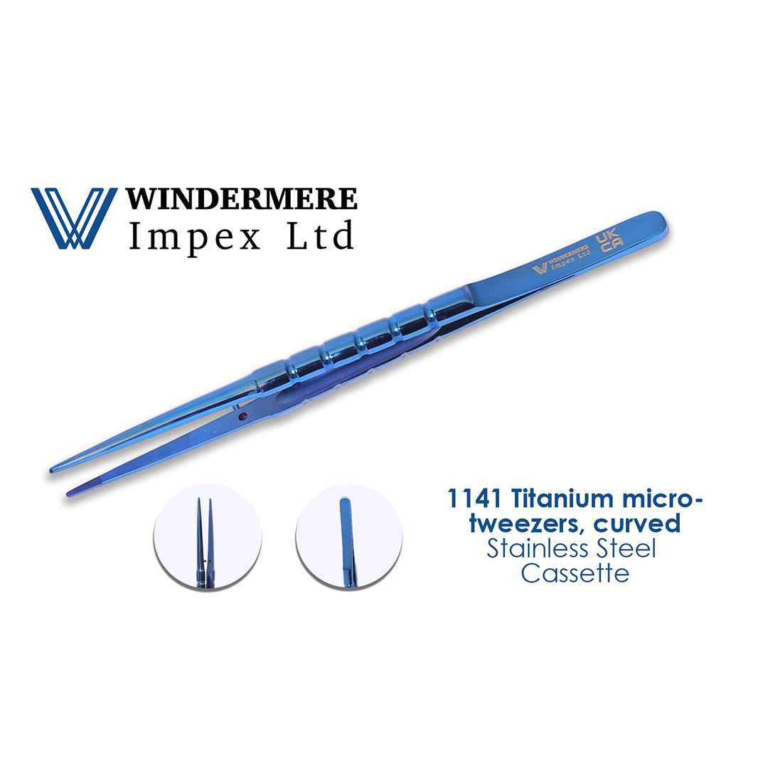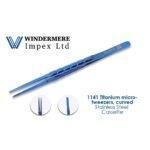 Ultra-fine, curved titanium tweezers designed for delicate tissue handling and micro-suturing. Provide excellent grip, precision, and control under magnification.