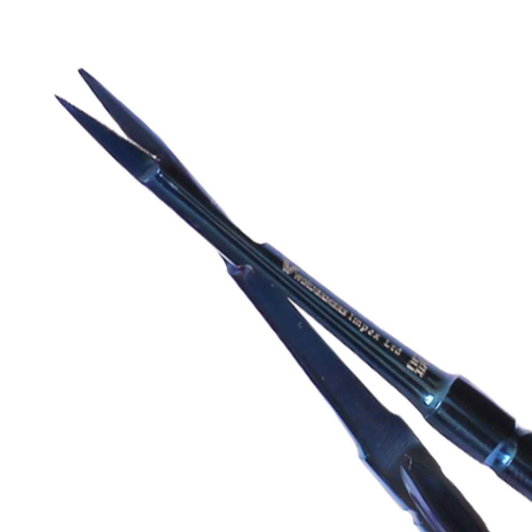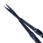 High-precision curved micro-scissors ideal for trimming soft tissue and microsutures cleanly and accurately with minimal trauma.