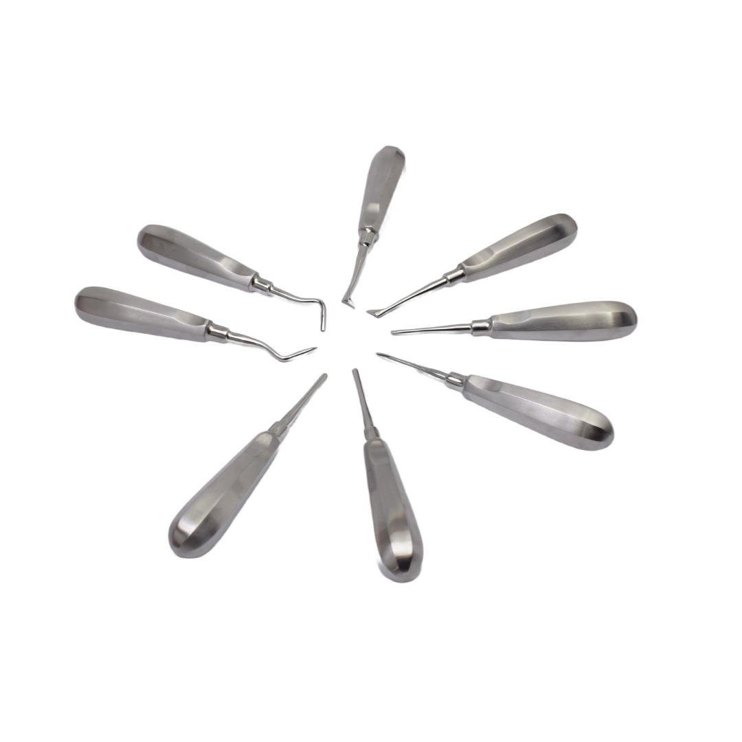 • Comprehensive set of 8 elevators suitable for anterior, posterior, and molar extractions