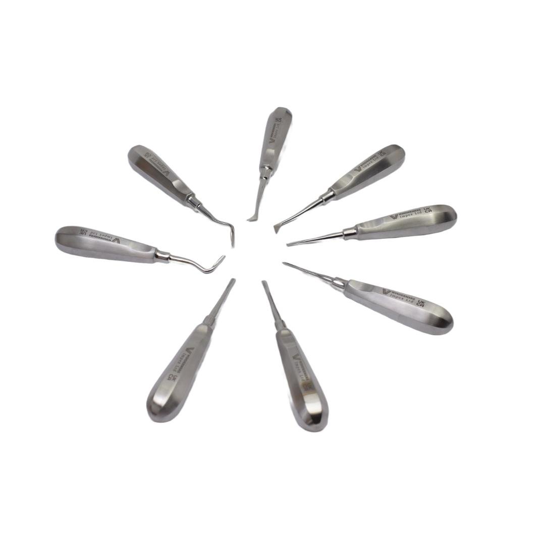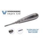 The Windermere Impex Ltd Root Elevators Set of 8 is a precision-engineered collection of dental extraction instruments designed for the efficient, controlled, and safe elevation and removal of roots, root fragments, and teeth during oral surgery and extraction procedures.
