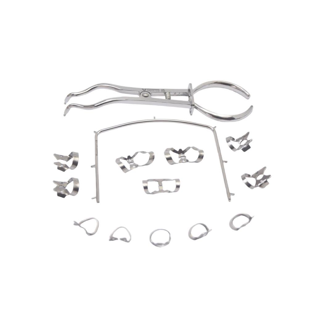 Neatly organized in a durable, autoclavable plastic case, the set is lightweight, compact, and ideal for both clinical use and portable setups. It includes a comprehensive range of clamps, frames, and forceps, ensuring versatility and adaptability for all isolation needs.