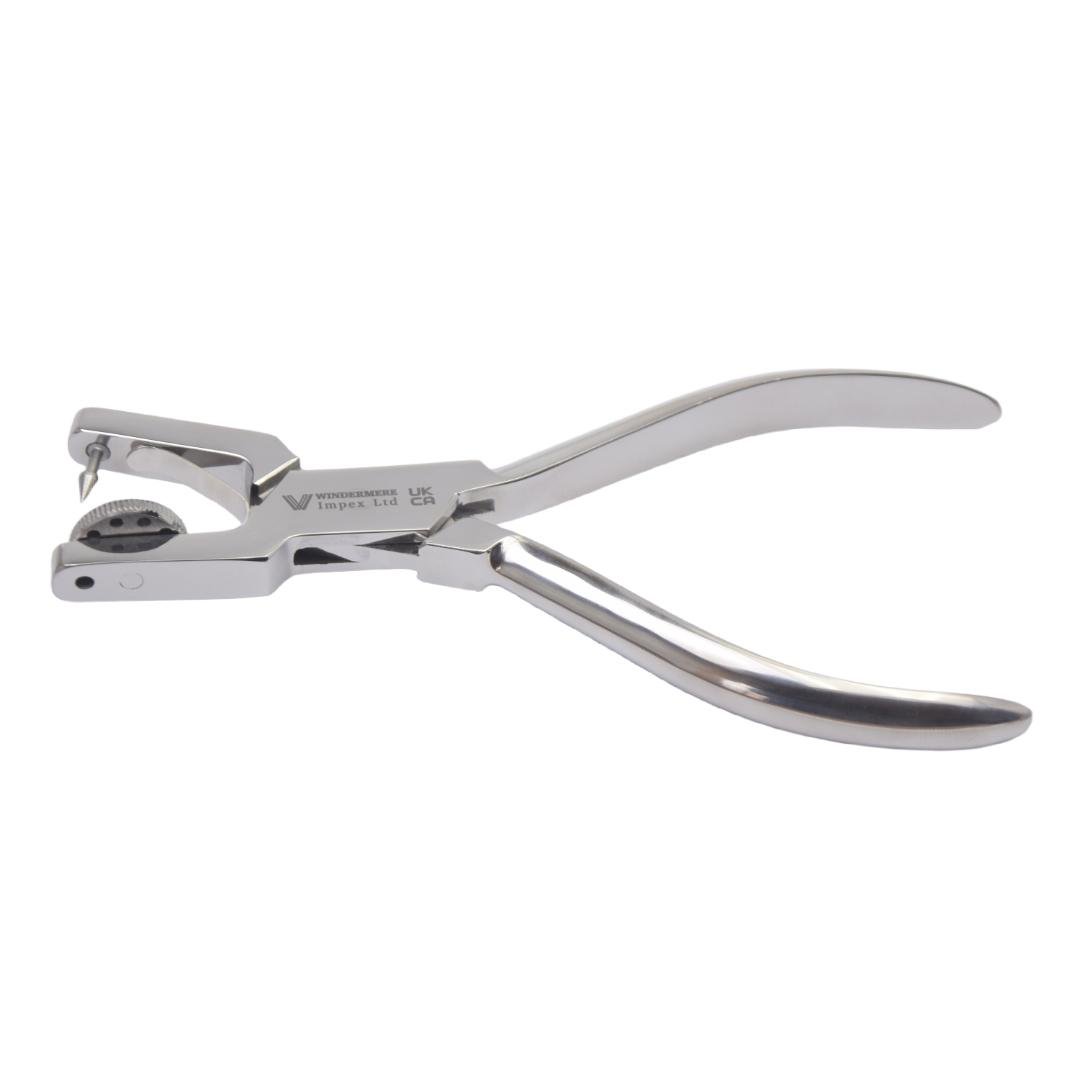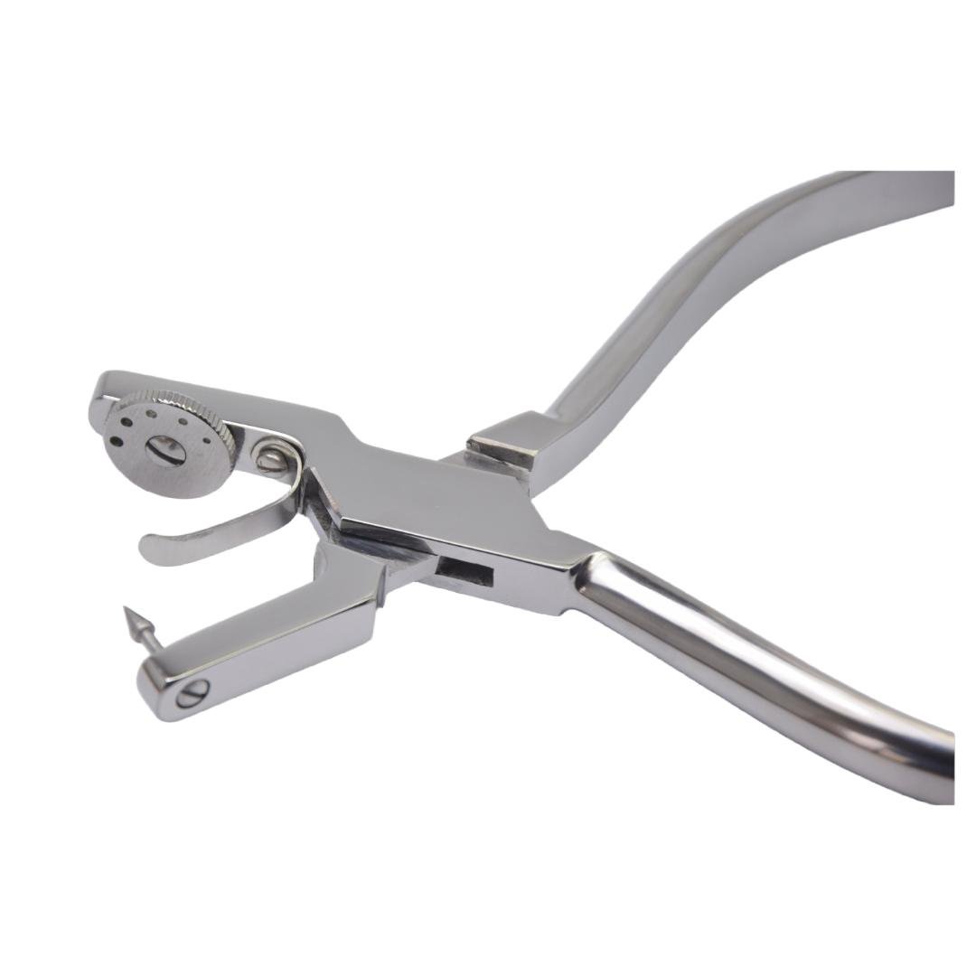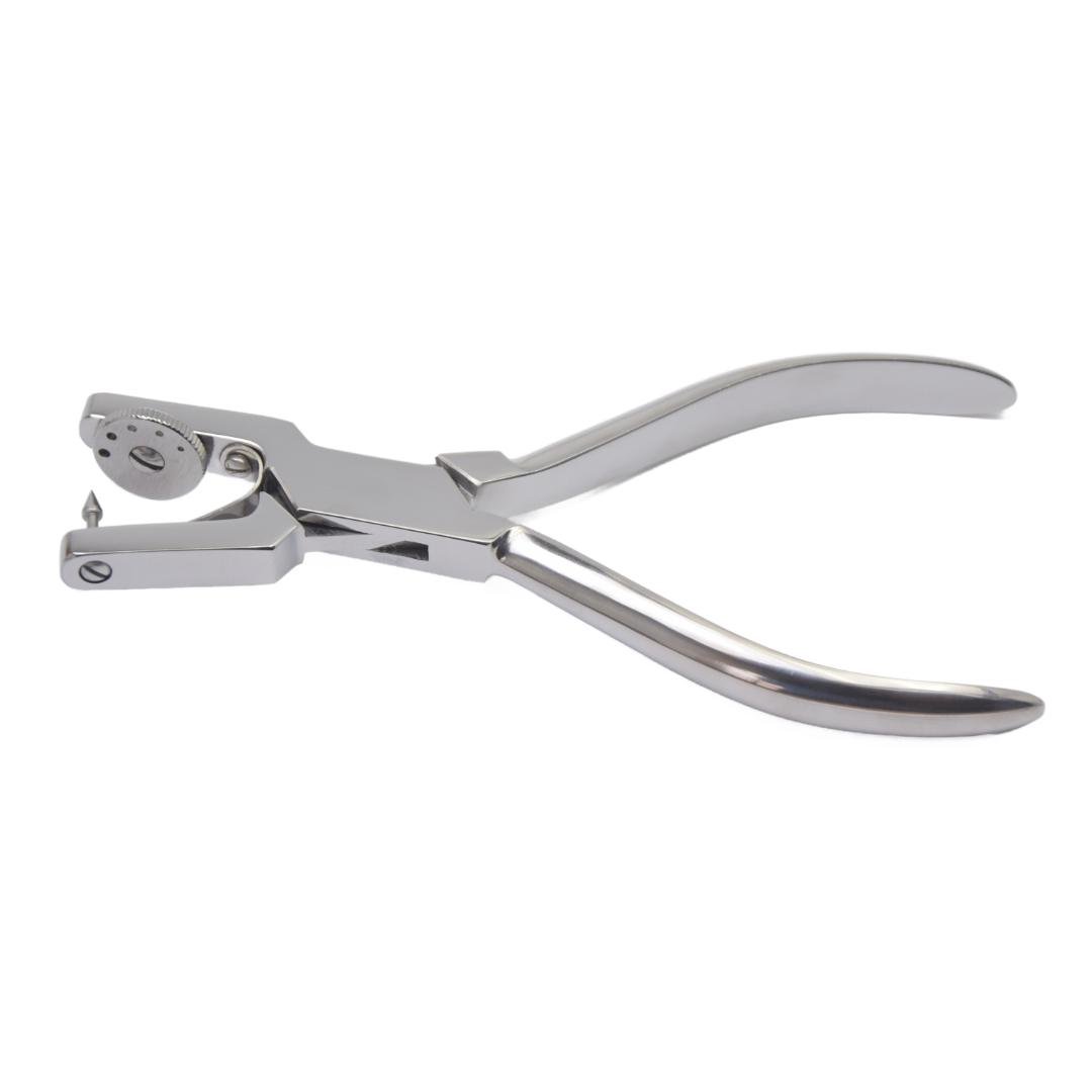 Adjustable punch designed for precise perforation of rubber dam sheets. Multiple hole sizes accommodate different tooth diameters, ensuring accurate dam positioning.